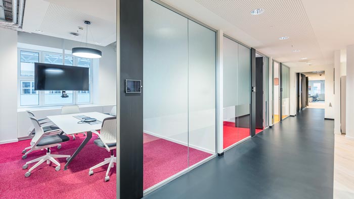 會(huì)議室的設(shè)計(jì):企業(yè)的文化就是任何問題都在內(nèi)部解決,所以對(duì)于會(huì)議室就有很高的要求,此處僅為空間的冰山一角,設(shè)計(jì)師利用了一個(gè)小小的物件——轱轆,就讓整個(gè)空間擁有了活性,空間可以根據(jù)需求自主的形成每一個(gè)形狀,一切都是可操作性的,代行會(huì)議室只需要將桌子進(jìn)行重組就可以,方便又便捷。