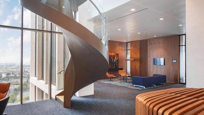 轉梯的設計:此處是連接樓上的關鍵地方,同時此處也是一個觀景的好去處,當我們不開心的時候、不愉快的時候、壓力大的時候,當我們來到此地,我們會感覺到一種豁然開朗的感覺襲來,這也是設計師給此處空間的附加屬性,讓人在這樣的空間之中心靈得以蛻變。