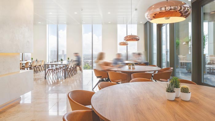 茶水間的設計:設計師在設計中,在此處動感模糊了幾個人影,目的就是為了讓人可以直觀的了解到空間的效果,律師平時也可以在這里辦公,在這里討論案情,與客戶在這里彼此交流,在設計師看來任何事都是急不來的,設計師需要做的就是為他們營造一個簡單的空間,讓他們可以在復雜中濾清自己的思路。