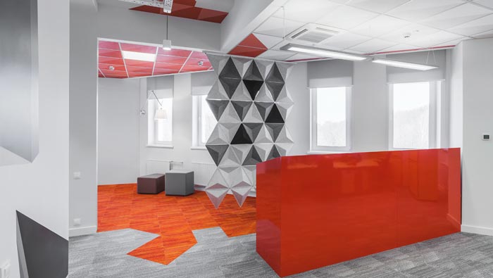 前臺的設計:此處給人的第一感覺就是簡單,空間中充滿了色彩的轉換,讓空間擁有另一番魅力,設計師認為不管是包裝設計,還是室內設計其實都有異曲同工之妙,色彩在設計的作用不可估量,而想要將色彩合理的利用起來何其難也,這也是設計師的自信所在,讓顧客看到后感受到企業的實力。