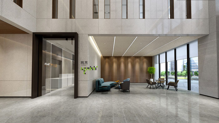 杭州智能廠房辦公樓前臺裝修設計效果圖