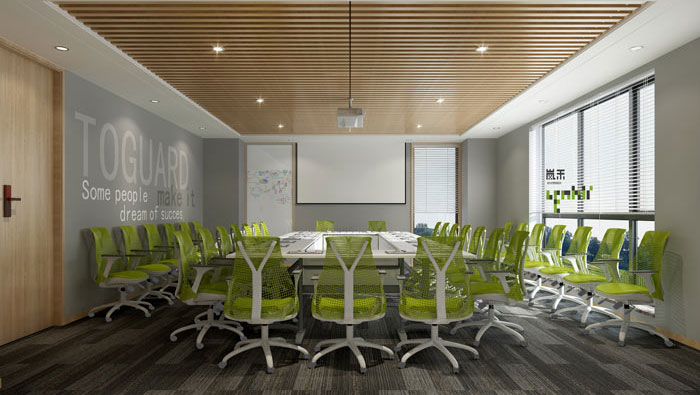 本次為杭州科技公司辦公室裝修設計效果圖,辦公室設計面積1058平方,設計師以穩重、活潑、通透、明亮為設計理念,希望打造一個人性化的辦公空間設計。
