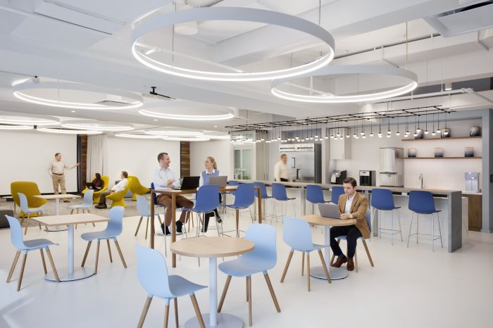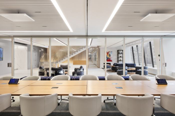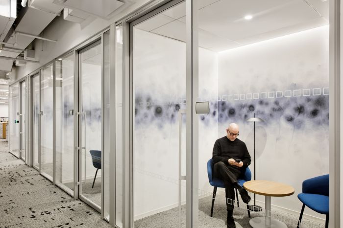 協作區域分布在辦公區和私人辦公室中,以創建通向多個體驗區域的路線。這包括音樂室、冥想室和休息室等空間,所有空間都是為健康而設計,旨在改善員工的工作方式。
