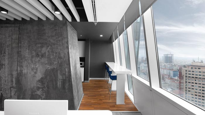 茶水間的設(shè)計(jì):此處位于窗邊的空間,設(shè)計(jì)師這樣設(shè)計(jì)的目的,就是希望將此處的優(yōu)點(diǎn)完美的發(fā)揮出來,吧臺(tái)位于窗邊,在這里可以眺望整個(gè)城市,設(shè)計(jì)師希望員工在這里可以放飛自己,在這里可以暫時(shí)的忘記一切,在自然的景觀中,讓自己得以歸零并重新開始。