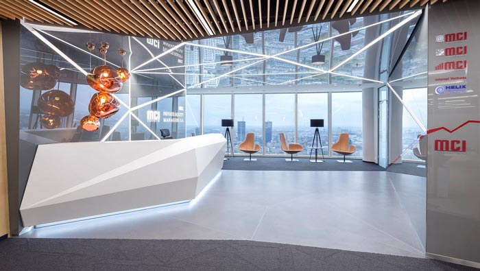 前臺(tái)接待區(qū)域的設(shè)計(jì):當(dāng)客戶進(jìn)入空間之后,首先感受到的就是空間的大氣與明亮,在設(shè)計(jì)師看來(lái)第一印象非常重要,故此設(shè)計(jì)師希望通過設(shè)計(jì)師的設(shè)計(jì),讓客戶感受到企業(yè)的實(shí)力,同時(shí)客戶可以透過窗戶欣賞到整個(gè)城市的美景,在這里本身就是一種享受,在這里人的視野會(huì)越來(lái)越寬廣,對(duì)于企業(yè)未來(lái)的發(fā)展十分重要。