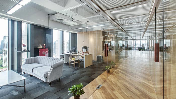 董事長辦公室的設計:設計師在設計的時候,與董事長進行了深入的交流,通過交流了解到董事長喜歡安靜與寧靜,這也就是設計師將此處安置在空間深處的原因,同時此處的視野也極好,讓董事長在辦公之余可以俯視與欣賞到整個外部美景,以此在不知不覺中提升董事長本人的視野。