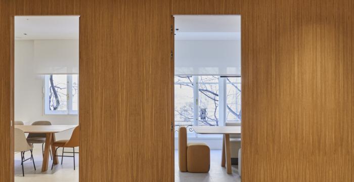 協(xié)作工作間被設(shè)想為中立的空間,為那些決定在辦公室工作的客戶提供各種活動(dòng),如視頻會(huì)議、簡短會(huì)議,甚至是合作活動(dòng)。各成員非但沒有制造阻礙意見交流的障礙,反而可以共用工作站,在需要更大隱私的時(shí)候可以選擇利用其他領(lǐng)域。