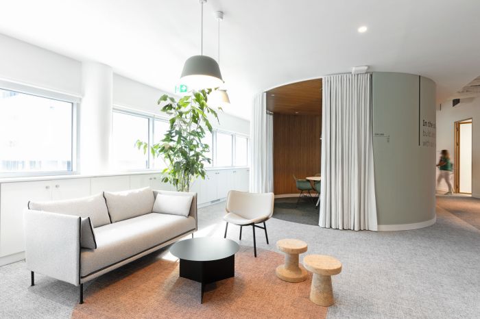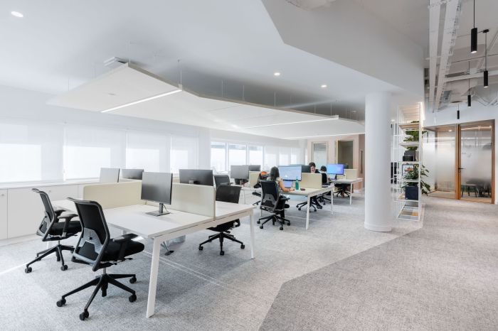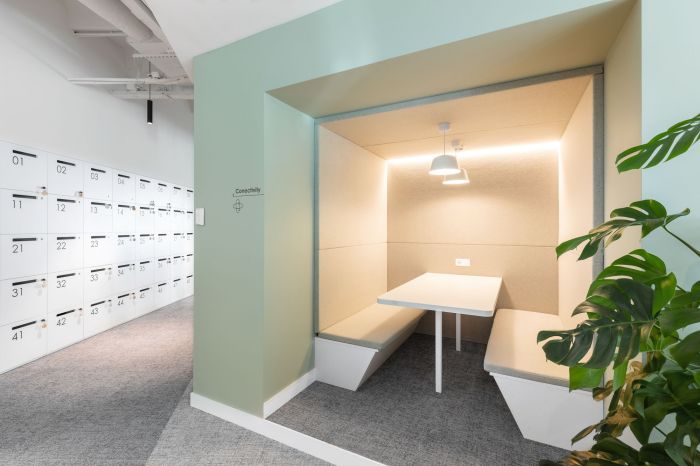 這些區域有相鄰的休息室空間、電話亭和非正式會議空間,可以滿足員工的多種需求,增加整個空間的利用率。工作區擁有大量的自然光和植物,提供了寧靜的氛圍。