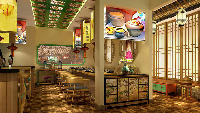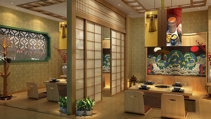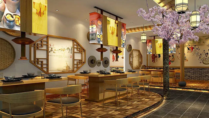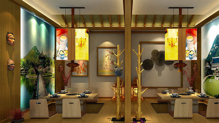 韓式特色餐廳裝飾墻設(shè)計(jì):空間中沒有嘈雜,有的只是靜謐,高雅的品位、溫文而雅的就餐環(huán)境,使人獲得精神上的放松,成為緊張工作之余的溫馨港灣,這是我們所追求的目標(biāo)。