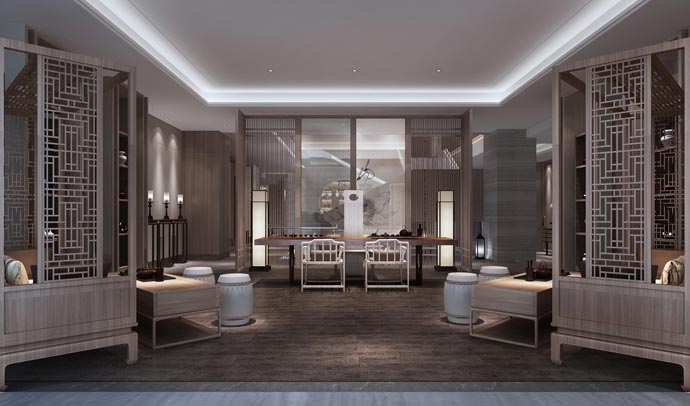 設(shè)計(jì)理念:設(shè)計(jì)師在茶樓茶室裝修設(shè)計(jì)的時候,經(jīng)過和業(yè)主之間的交談,了解到業(yè)主喜歡東西方相結(jié)合的風(fēng)格元素,并且在空間需要有禪意的體驗(yàn)。