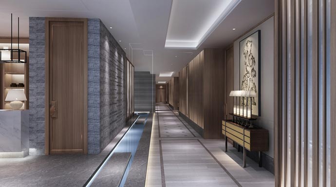 設(shè)計(jì)師為結(jié)合現(xiàn)代的消費(fèi)人群,風(fēng)格整體定位為東方偏西風(fēng)格,整體思路減輕了東方的元素,融入西方的符號,并加入禪意體驗(yàn)。