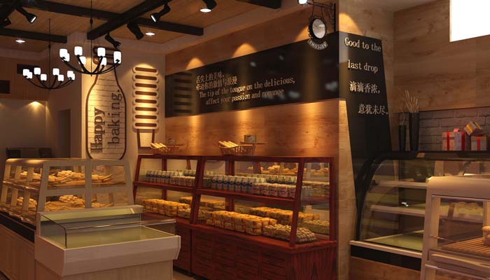 設(shè)計(jì)師在蛋糕店裝修設(shè)計(jì)的時(shí)候,運(yùn)用高大的面包蛋糕櫥窗、老木板包柱都向外展示了店內(nèi)舒適的環(huán)境。