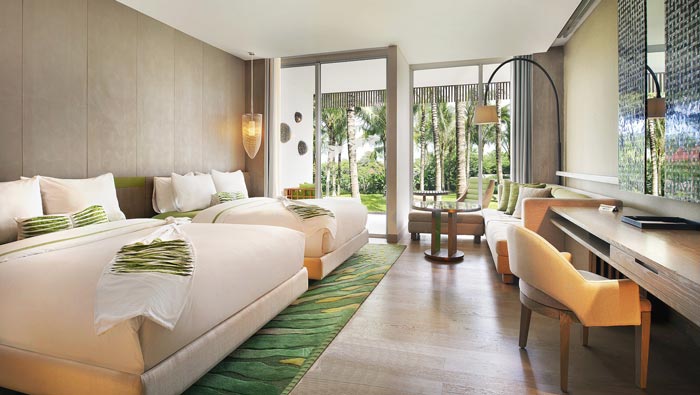 客房的設(shè)計:在這里我們感受到的是度假村美麗的景色,在這里我們離自然是那么的近,設(shè)計師在設(shè)計中也充分考慮到室外景色的引入,在設(shè)計師看來客房與戶外景色相互融合,所達到的效果絕不是簡單的1+1,而是將酒店進行了一次全新的深化,讓酒店進行一個全新的升級。