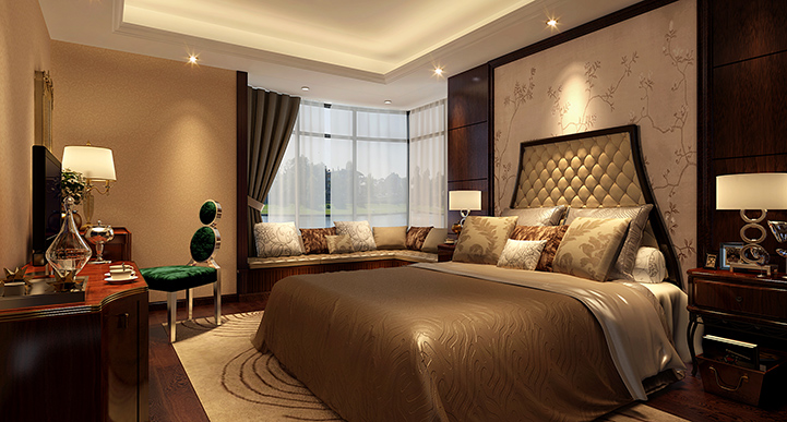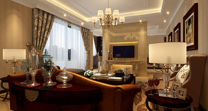 設計理念:以白色調和深啡色調為大對比色彩,加以簡約形態的暖色家具為中間色來諧調,營造一種高貴雅致對比的深度感的空間。將歐洲新古典風格演繹成一種優雅的平衡姿態,含蓄、考究的家居空間