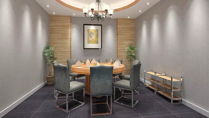 魚火鍋店六人包廂設計:此包廂可以容納6人,這里是家庭聚餐的首要選擇,也是朋友聚餐的首要選擇,這里安靜、舒適、簡單,讓一家人在這里享受團聚的喜悅。