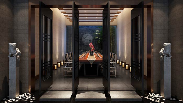 肥牛火鍋店大包廂設計:大包廂給人的第一感覺就是大氣,這里適合公司、家庭的聚餐,空間可以容納將近20個人,室內與室外相互結合,為客戶提供一個優質的就餐環境。