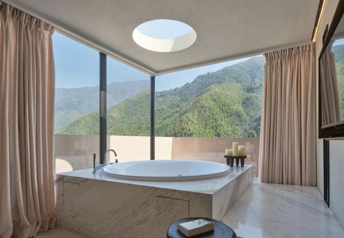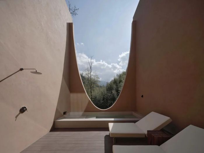 善侒酒店位于竹海山林深處,建筑設(shè)計融入自然元素,采用當?shù)夭牧希宫F(xiàn)出與自然和諧共存的美感。酒店擁有17間客房,各自擁有獨特的風景和設(shè)計特色,比如“赤樓”的米色墻面和流暢線條、“頤樓”的私享庭院以及“需樓”的巨大U型泡池。