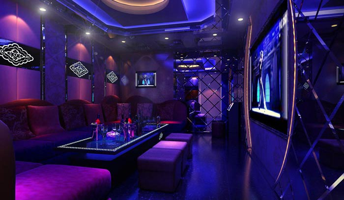 設計理念:番禺富華國際KTV裝修設計,經考察和分析,提取了原方案的主要元素和色采,盡可能地保留了夜場的氣氛,因場所面積大,選用大量的流線做引導設計,空間上,依墻而隔,加入了部分隔間材料。