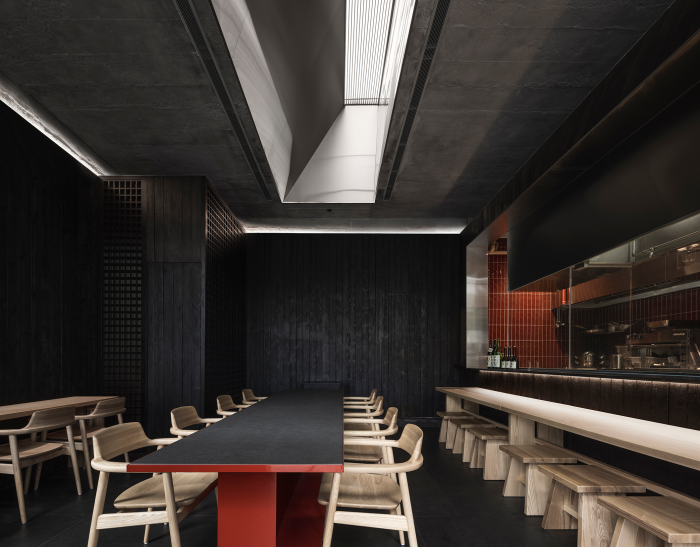 日本料理店的菜單會根據不同季節的食材進行微調,而空間材質的選擇也反映了料理文化和空間表達的哲學理念。設計師希望通過細致把控質感,將匠心旨意體現在空間的每一個細節之中。