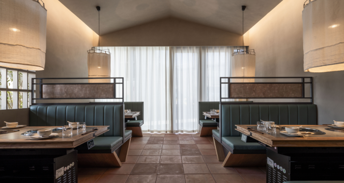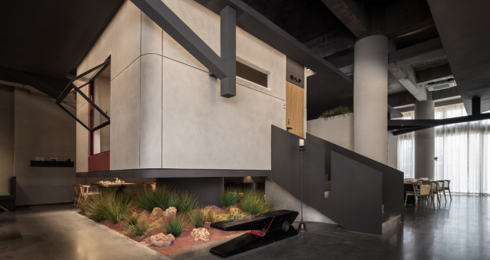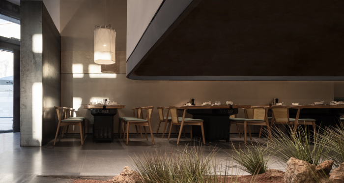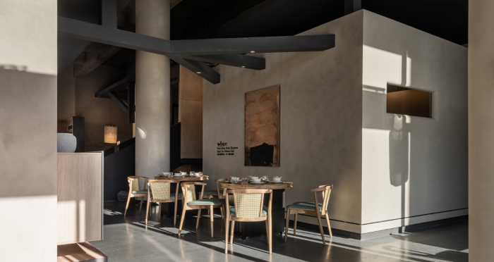 這是“侘寂煙火-如熹RUXI”餐廳的設計理念和品牌故事。餐廳以打邊爐為核心,強調“侘寂”美學的孤寂與市井煙火的對比。設計師通過將空間化零為整、打通室內邊界,營造出人與自然之間的深層關系??臻g設計以“侘寂煙火”為主題,運用開放界面和透明封閉界面,將自然光引入作為主要照明方式,創造出豐富的光影韻律。設計希望通過空間的沉浸感讓食客放松下來,享受當下。整體空間設計質樸自然,融入了水墨元素,增加了調性和趣味性。通過在“侘寂”中感受人間煙火氣,設計希望重新尋找通往松弛和諧的理想生活。