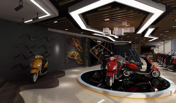 設(shè)計理念:設(shè)計師是首次接手自行車、電動車在一起的專賣店裝修設(shè)計,在設(shè)計之初和業(yè)主進行了深入的交談,不管是電動車展廳還是自行車展廳,在設(shè)計的時候,都以透出各自的特點為首要條件,通過設(shè)計襯托出電動車和自行車不一樣的風格。